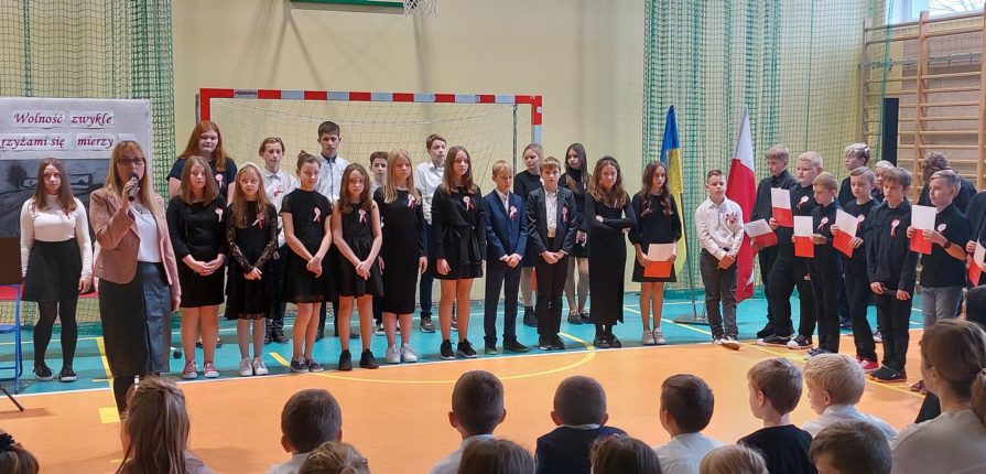 Dnia 10 listopada w naszej szkole odbył się akademia z okazji Narodowego Święta Niepodległości. Uroczystość rozpoczęła się o godz. 11.00. Jak co roku społeczność uczniowska przystąpiła do ogólnopolskiej akcji „Szkoła do hymnu”. Dokładnie o godzinie 11.11 wszyscy uczniowie wraz z nauczycielami odśpiewali hymn narodowy – Mazurek Dąbrowskiego. Kolejnym wydarzeniem tego dnia była akademia ph. „Wolność zwykle krzyżami się mierzy”, przygotowana przez uczniów i nauczycieli naszej szkoły. Podczas apelu uczniowie przybliżyli młodszym kolegom historię naszego kraju z czasów, gdy Polska straciła niepodległość i zniknęła na 123 lata z map świata. Opowiadali o walce z zaborcami i patriotyzmie naszych przodków, którzy ginęli na polu bitwy o wolny kraj. To właśnie cierpienia, walka, więzienia, zsyłki i przelana krew są biogramem często bezimiennych bohaterów, dzięki którym żyjemy dzisiaj w wolnej Polsce. Podczas występu mogliśmy usłyszeć wiele pięknych wierszy, piosenek zaprezentowanych przez solistki oraz chór chłopięcy, który odśpiewał pieśni legionowe.
