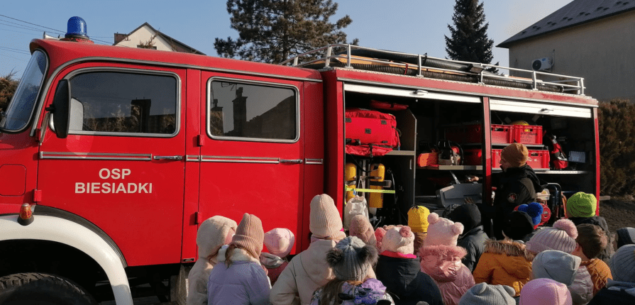 Uczniowie klas I-III w ramach realizowanego projektu „Matematyka w Straży Pożarnej” mieli wyjątkowa okazję odwiedzić jednostkę Ochotniczej Straży Pożarnej w Biesiadkach. Podczas wizyty Pan Paweł w ciekawy sposób opowiadał, jak strażacy wykorzystują matematykę w swojej pracy. Zapoznał uczniów z narzędziami i urządzeniami przydatnymi w akcjach ratowniczych znajdujących się w wyposażeniu wozów strażackich i okazało się, że w nich ukryta jest