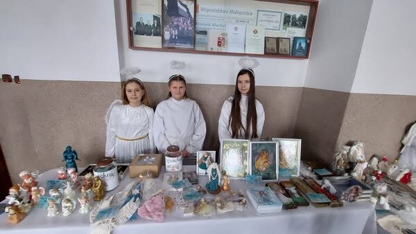 Członkowie Szkolnego Koła Wolontariatu mocno zaangażowali się w organizację akcję: „Anioły są wśród Nas”. Było pieczenie ciasteczek, wyplatanie aniołków, przygotowywanie Sali i stoiska na kiermasz. Dnia 12 stycznia Anioły pojawiły się w Sali głównej Domu Ludowego w Biesiadkach. Prowadziły imprezę i zapowiadały kolejne punkty programu artystycznego, inne Anioły zarządzały kiermaszem charytatywnym a jeszcze inne na scenie występowały w jasełkach. Było