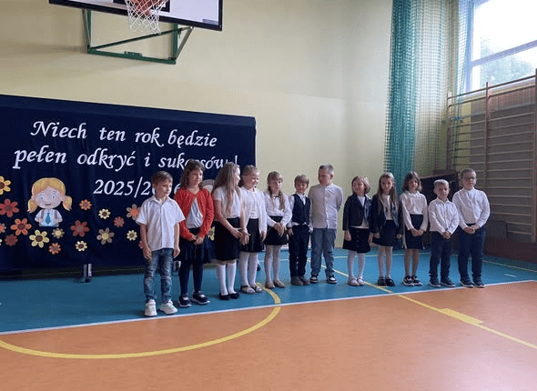 Uroczystość rozpoczęliśmy wspólnym odśpiewaniem hymnu państwowego, oddając hołd obrońcom ojczyzny i ofiarom II wojny światowej w rocznicę jej wybuchu. Pani Dyrektor serdecznie powitała uczniów, rodziców i nauczycieli, życząc wszystkim wytrwałości, sukcesów i satysfakcji z nauki i pracy. Przed nami kolejny rok pełen wyzwań i nowych doświadczeń. Życzymy wszystkim, aby był to czas owocnej pracy i radosnych chwil.