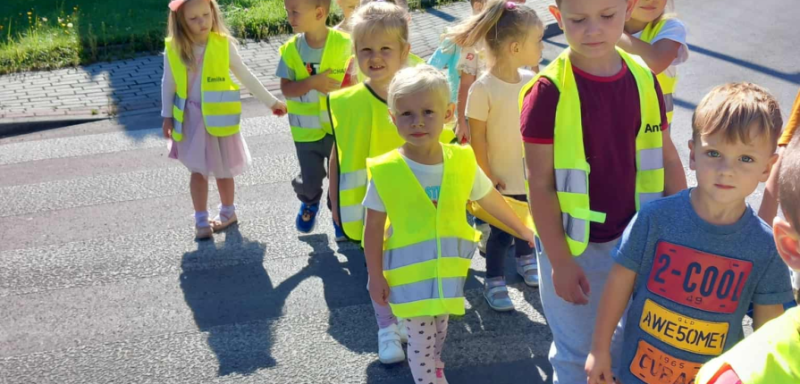 Maluszki z grupy ,,Biedroneczki” uczą się spacerować z ,,wężem” i poznają podstawowe zasady ruchu drogowego.
