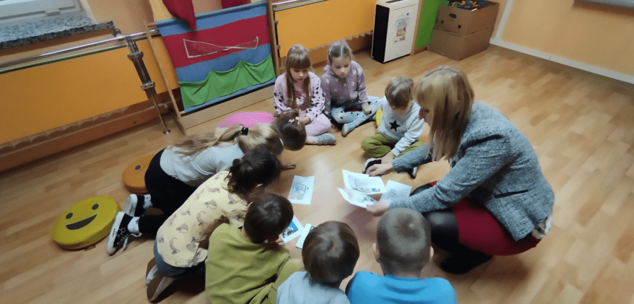 W ramach projektu edukacyjnego ,,W świecie zawodów ” przedszkolaki spotkały się z doradcą zawodowym, aby porozmawiać na temat zawodów i miejsc pracy rodziców. Poznały zawód – projektant ogrodów, wnętrz, klocków LEGO, projektant mody. Doradca zawodowy zabrał dzieci w świat sztuki i zamienił ich w projektantów odzieży. Przedszkolaki miały za zadanie zaprojektować świąteczny strój: sweterek, czapkę, sukienkę. Dzieci poradziły sobie z