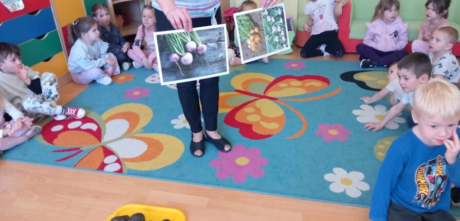 Realizując projekt ,,Witaminki” z Bliżej Przedszkola, tym razem naszą warzywną bohaterką była rzepa Rozalia. Przedszkolaki oglądały rzepę, którą przywiózł nam i gratisowo przekazał Pan Krzysztof Kądziołka, właściciel sklepu JARZYNKA w Brzesku, za co mu serdeczne dziękujemy. Następnie dzieci próbowały surowej rzepy oraz przygotowywały i degustowały surówkę z rzepy. Dowiedziały się, że każdy ma swoją rzepkę, a nawet dwie w swoich