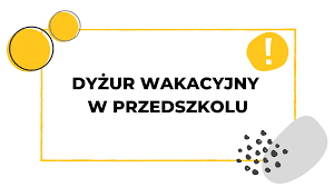Z powodu ograniczonej liczby miejsc w przedszkolu, na dyżur wakacyjny mogą być zgłoszone tylko dzieci rodziców, którzy pracują i nie przebywają w tym czasie na urlopach (wypoczynkowym, bezpłatnym, macierzyńskim, ojcowskim, rodzicielskim lub wychowawczym)
