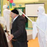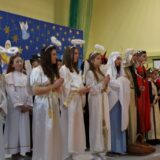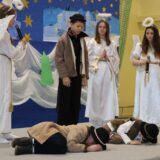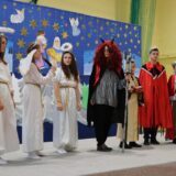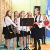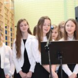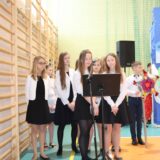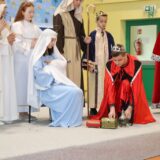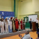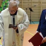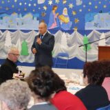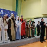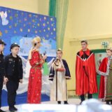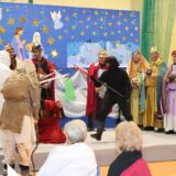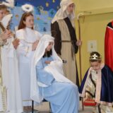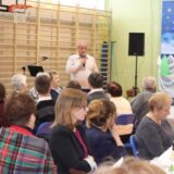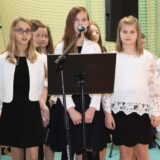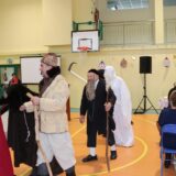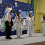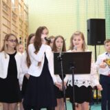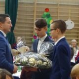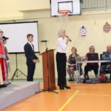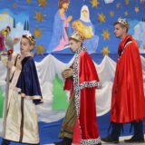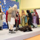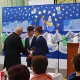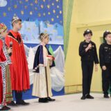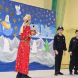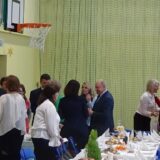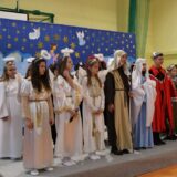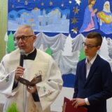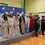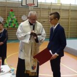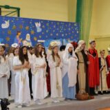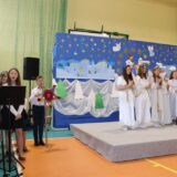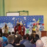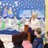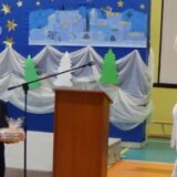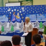 Prowadzące wprowadziły również w magię świąt, przypominając, że czas Bożego Narodzenia, to czas, kiedy myślimy o drugim człowieku, chcemy mu sprawić choć odrobinę radości, okazać życzliwość, zauważyć jego potrzeby. Po oficjalnym rozpoczęciu spotkania, aspirant Maciej Kostrzewa przeprowadził krótką prelekcję na temat bezpieczeństwa seniorów i konieczności stosowania odblasków oraz ostrzegał przed oszustami wykorzystującymi łatwowierność starszych osób. Następnie głos zabrała dyrektor Bożena Dorota Pałka, która również serdecznie podziękowała wszystkim za przybycie, zwróciła uwagę na radość płynącą z organizacji tej najważniejszej w roku uroczystości, gdyż ma ona na celu zacieśnienie więzi międzypokoleniowych oraz uwrażliwianie wychowanków na dostrzeganie drugiego człowieka. Wyraziła nadzieję, że ta lekcja zaowocuje w przyszłości i nasi uczniowie będą mieć otwarte serca na potrzeby innych ludzi.