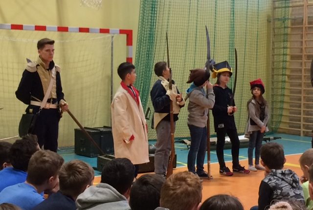 W dniu 4 lutego w naszej szkole wystąpiła Grupa Artystyczna „Rekonstrukto” z pokazem historycznym „Ku Niepodległej”. Była to opowieść o tym, jak bohaterowie walczyli o wolność, honor i ojczyznę. To lekcja historii, upamiętniająca dążenia niepodległościowe. Prowadzący przypomnieli ważne wydarzenia z historii Polski: Powstanie Kościuszkowskie, okres Księstwa Warszawskiego, Powstanie Listopadowe, Powstanie Styczniowe, I Wojnę Światową, sytuację pod zaborami. Uczniowie zobaczyli stroje