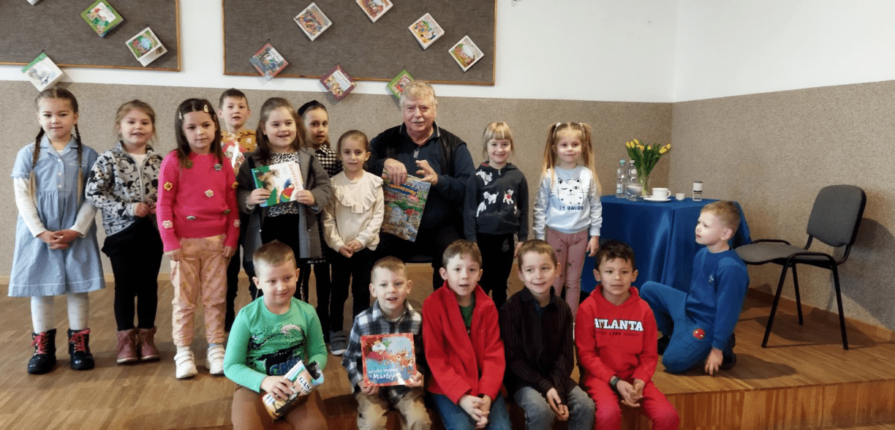 Dnia 21 marca 2023r. był dla przedszkolaków dniem bardzo aktywnym, pracowitym i pełnym niespodzianek. Rano, dzięki zaproszeniu przez Publiczną Bibliotekę w Biesiadkach, dzieci spotkały się z panem Wiesławem Drabikiem, autorem ponad 250 książek dla dzieci. Potem przywitaliśmy wiosnę wierszami Jana Brzechwy, ponieważ w tym właśnie dniu, odbył się konkurs recytatorski pt. ,,Jan Brzechwa Dzieciom” w ramach realizowanego projektu ,,Co słonko widziało – na dziecięce kłopoty ….Brzechwa”.