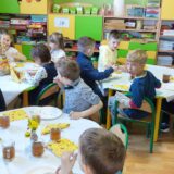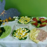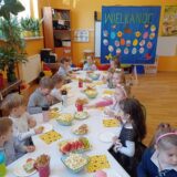W dniu 13 kwietnia w naszym przedszkolu odbyło się śniadanie wielkanocne, które było wielkim wydarzeniem, w szczególności dla małych Biedroneczek, które pierwszy raz przeżywały w swojej grupie taką uroczystość. Było smacznie, zdrowo i kolorowo, a w powietrzu czuć było nadchodzące święta. Starszaki uczyły się same komponować swoje wiosenne kanapeczki i inne smakołyki. Wszystkim dopisywały dobre humory i samopoczucie. Dziękujemy rodzicom za przygotowanie śniadania wielkanocnego i za smaczne niespodzianki do koszyczków.