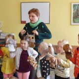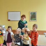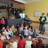 Pięciolatki i sześciolatki wraz z rodzicami, miały możliwość 2 października 2019r. spotkać się w Świetlicy Wiejskiej w Biesiadkach z pisarką, autorką wielu książek i wierszy dla dzieci, panią Ewą Stadtmüller. Spotkanie mogło się odbyć dzięki zaproszeniu przez Stowarzyszenie na Rzecz Rozwoju wsi Biesiadki ,,TRADYCJA I ROZWÓJ”.  Pani Ewa opowiadała, jak powstają książki, skąd bierze pomysły na ich tematykę. Przedszkolaki z rodzicami mieli możliwość  dobierać rymy i bawić się w tworzenie wierszy wykorzystują różne pacynki. Dowiedziały się jaką drogę przechodzi dzieło od autora do czytelnika, jacy ludzie biorą udział w procesie powstania książki. Na zakończenie pisarka  podpisywała swoje książki zakupione przez rodziców. Mamy nadzieję, że spotkanie ze znaną autorką książek dla dzieci wpłynie pozytywnie na rozwój zainteresowania czytelnictwem zarówno przedszkolaków                                         jak i dorosłych.