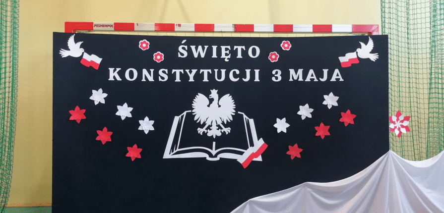We wtorek 30 kwietnia br. odbyła się w naszej szkole akademia z okazji 233 rocznicy uchwalenia Konstytucji 3 Maja. Uroczystość rozpoczęła się wprowadzeniem pocztu sztandarowego i odśpiewaniem Hymnu Narodowego. Następnie wszyscy obecni stali się uczestnikami nietypowej lekcji historii i patriotyzmu przygotowanej przez uczniów klasy VII.