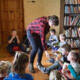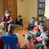 14 listopada 2019 roku sześciolatki z wychowawczynią udały się z wizytą do Publicznej Biblioteki w Biesiadkach. Tam czekało na dzieci wiele niespodzianek. Przedszkolaki słuchały krótkiej bajeczki czytanej przez Panią Ewelinkę – bibliotekarkę, rozpoznawały i poszukiwały tropy zwierząt leśnych, kolorowały, rysowały, bawiły się w suchym basenie, a na koniec zostały obdarowane książkami i naklejkami. Lekcja biblioteczna była bardzo ciekawa, nowatorska, a zarazem pouczająca. Mam nadzieję, że sześciolatki będą chętnie odwiedzać bibliotekę, wypożyczać i czytać książki.