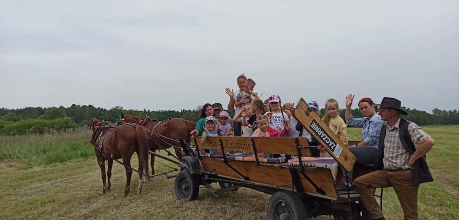 Dopełnieniem programu wycieczki była beztroska zabawa na placu zabaw, a na koniec pyszny obiadek, po którym udaliśmy się w dalszą podróż do Zaczarnia, aby odwiedzić Mini zoo. Tam mieliśmy możliwość obejrzeć różne zwierzęta, niektóre pogłaskać a nawet nakarmić. Atrakcją była przejażdżka na wozie ciągniętym przez parę koni. Wycieczka należała do bardzo udanych. Do Biesiadek wycieczkowicze wrócili trochę zmęczeni, ale za to bardzo zadowoleni i pełni wrażeń.