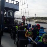 Podróż minęła spokojnie, uczniowie spali lub rozmawiali ze sobą. Ok. godz. 9.00 dotarliśmy na miejsce, powitano nas pysznym śniadaniem i mogliśmy rozgościć się w swoich pokojach. W słońcu, na ławeczkach przed ośrodkiem uczniowie zostali zapoznani z regulaminami ośrodka, wycieczek pieszych i autokarowych itd., Pogoda nam sprzyjała, więc nadszedł czas na ,,powitanie” z morzem. Większość uczniów nie była jeszcze nigdy nad morzem, więc ich zachwyt gdy zobaczyli nadmorski krajobraz był naprawdę imponujący. Pozostała część dnia minęła na spacerach brzegiem morza, budowaniem zamków z piasku i poznawaniu okolicy. W niedzielę uczniowie mogli dłużej pospać, po śniadaniu wyruszyliśmy pieszo do kościoła w Ustroniu Morskim na mszę św. Po obiedzie czas spędziliśmy na plaży podziwiając nadmorski krajobraz oraz spędzając czas na terapii klimatycznej, zapewniając wszystkim wypoczynek w zdrowymklimacie wybrzeża, w strefie bezpośredniego oddziaływania jodu isoli. Wieczorem zorganizowano dyskotekę, podczas której, wszyscy bawili się wyśmienicie. Każdy następny dzień pobytu upłynął z inną atrakcją. W poniedziałek odwiedziliśmy Zieleniewo, gdzie uczniowie zdobywali ,,Dziki Zachód”, korzystając tam z następujących atrakcji: kowbojska karuzela, przejażdżka na koniu, autodrom, labirynt, mechaniczny byk rodeo, przejażdżka bryczką, pokazy kaskaderskie, scenki westernowe, zwiedzanie mini zoo, wizyta w wiosce indiańskiej, zwiedzanie western city, beczka śmiechy, beczkowóz, przejażdżka autem terenowym. Po południu odbyły się zajęcia dydaktyczne oraz spacer deptakiem do Ustronia Morskiego. We wtorek po śniadaniu, zajęciach dydaktycznych i pysznym obiedzie zwiedziliśmy latarnie morską w Gąskach. Na szczyt latarni prowadzą kręte, granitowe schody – aby się dostać na taras trzeba pokonać ich aż 190. Ze szczytu rozciąga się malowniczy widok na Morze Bałtyckie, dostrzec można stąd Sarbinowo, Chłopy, Mielno i Unieście. Latarnia jest usytuowana w centrum wsi, u podstawy wieży znajduje się dom latarnika, kramiki z jedzeniem i pamiątkami oraz ładnie zagospodarowany teren. Latarnia jest wpisana do rejestru zabytków. Środa była dniem, w którym odwiedziliśmy Kołobrzeg. Odbył się rejs statkiem, niestety ze względu na wysokie fale na morzu, pływaliśmy tylko po porcie. Z panią przewodnik zwiedziliśmy miasto położone u ujścia rzeki Persęty. Widzieliśmy urokliwe molo, pomnik Zaślubin Polski z Morzem, uzdrowiska, pomnik Tysiąclecia obok bazyliki konkatedralnej, latarnie morską, itp. Po południu odbyły się zajęcia dydaktyczne według planu, a wieczorem podziwialiśmy zachód słońca nad morzem, aż do ok 21.00. Czwartek na Zielonej Szkole upłynął na całodniowej wycieczce do Trójmiasta. Najpierw było Akwarium w Gdyni, które prezentuje zwierzęta z ciepłych i chłodnych mórz oraz ciekawe gatunki słodkowodne z całego świata. Można też zapoznać się z faunę lokalną. Szczególną uwagę zwróciliśmy na ciekawie zaprezentowane, niezwykłe stworzenia wodne i świat przyrody ukryty pod taflą wody. Później udaliśmy się na statek muzeum ,,Dar Pomorza” czyli ,,Biała Fregata”, gdzie wysłuchaliśmy jego historii i zwiedziliśmy jego wnętrze. Pani przewodnik podczas podróży po Gdyni opowiedziała nam o tym ,,młodym mieście z morza i z marzeń”. Ze względu na padający deszcz, molo w Sopocie musieliśmy odwołać, ale za to zwiedziliśmy piękny Gdańsk. Jest to stolica województwa pomorskiego, centrum kulturalne, naukowe i gospodarcze oraz węzeł komunikacyjny północnej Polski, ośrodek gospodarki morskiej z dużym portem handlowym. Zobaczyliśmy: ulice Długą i Długi Targ tworzące Trakt Królewski, należą one do najpiękniejszych ulic Gdańska. Biegną prostopadle do Motławy od Złotej Bramy do Zielonej Bramy, Ratusz Głównego Miasta, Dwór Artusa, Złotą Kamienicę, Złotą Bramę, Żuraw i Bazylikę Mariacką oraz fontannę Neptuna. To tylko najważniejsze wyznaczniki tego urokliwego miasta, reszta została na kolejną ,,Zielona Szkołę”. Do ośrodka wróciliśmy bardzo późno, ale wrażenia były niezapomniane. Kolejne dni naszego pobytu upłynęły na zajęciach dydaktycznych, zwiedzaniu Ustronia Morskiego ciuchcią, zakupie pamiątek dla najbliższych oraz spacerach plażą i brzegiem morza, jako pożegnanie z tym pięknym krajobrazem i widokami. Uczniowie sprawnie spakowali swoje walizki i ok. godz. 19 wyruszyliśmy w drogę powrotną do Biesiadek. Na miejscu byliśmy ok 8.00 rano.